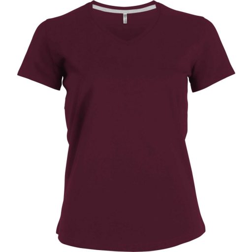 Női V-nyakú rövid ujjú pamut póló, Kariban KA381, Wine-2XL