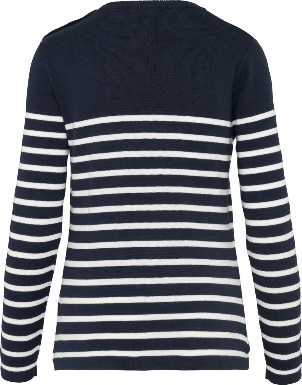 Női vállon gombolós csíkos pulóver, Kariban KA990, Striped Navy/Off White-2XL