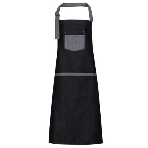 Premier hosszú farmerkötény kontrasztos zsebekkel és pánttal,