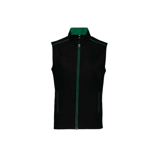 WK6148 férfi mellény három zsebbel és kontrasztos díszítésekkel Designed To Work, Black/Kelly Green-2XL