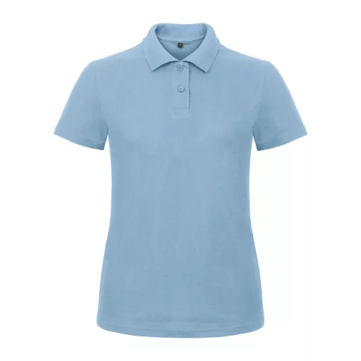 B&C klasszikus fazonú, rövid ujjú Női galléros póló, O07, Light Blue-XL