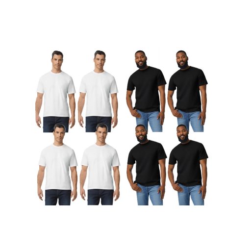 8 db-os csomagban Gildan GI3000 körkötött rövid ujjú férfi pamut póló, fekete-fehér-XL