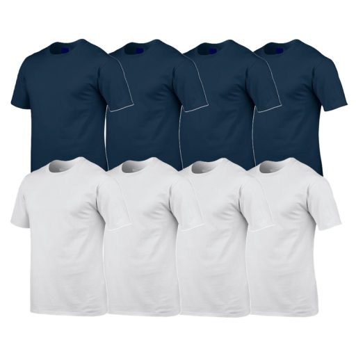 8 db-os csomagban Gildan kereknyakú pamut póló, sötétkék-fehér-XL