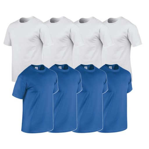 8 db-os csomagban Gildan kereknyakú pamut póló, royal-fehér-2XL