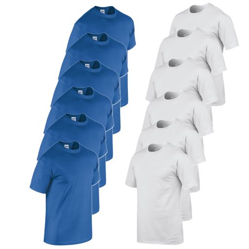 12 db-os csomagban Gildan 5000 kereknyakú pamut póló, királykék-fehér-S
