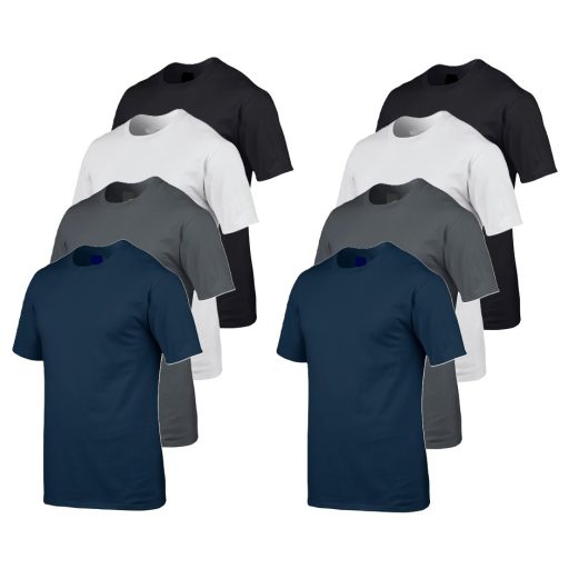 8 db-os, 4 színes csomagban Gildan kereknyakú pamut póló, fekete, fehér, charcoal, sötétkék-XL