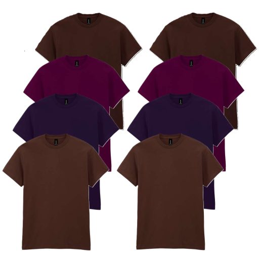 8 db-os, 4 színes csomagban Gildan kereknyakú póló, Russet, Maroon, Blackberry, Dark Chocolate-L