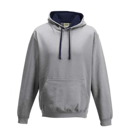 Just Hoods Uniszex kapucnis pulóver kontrasztos színű kapucni béléssel AWJH003, Heather Grey/French Navy-XL
