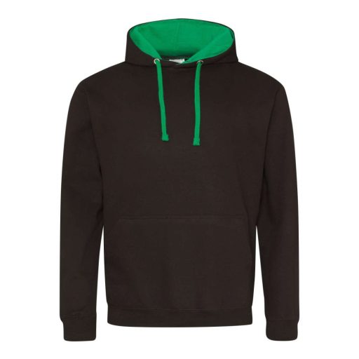 Just Hoods Uniszex kapucnis pulóver kontrasztos színű kapucni béléssel AWJH003, Jet Black/Kelly Green-XS