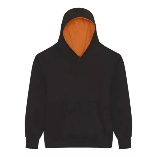 Just Hoods Gyerek kapucnis pulóver kontrasztos színű kapucni béléssel AWJH003J, Jet Black/Orange Crush-3/4