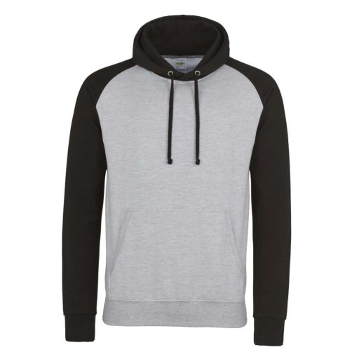 Just Hoods Uniszex raglános kétszínű kapucnis pulóver AWJH009, Heather Grey/Jet Black-S