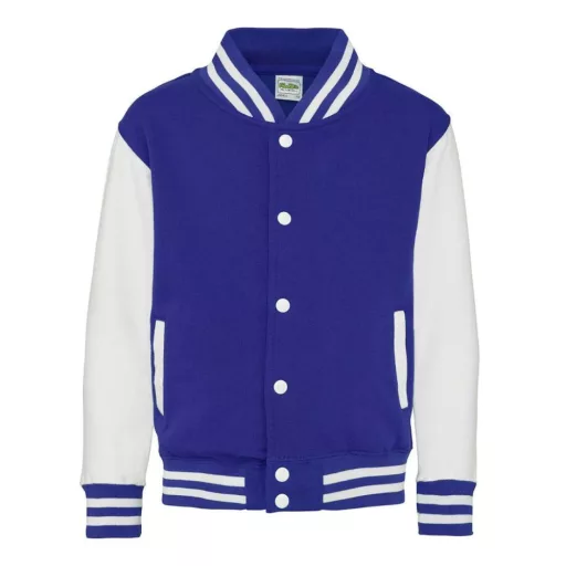 Just Hoods patenttal záródó vastag gyerek pulóver AWJH043J, Royal Blue/Arctic White-7/8