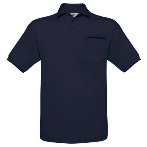 B&C BCPU415 mellzsebes rövid ujjú galléros piké férfi póló, Navy-XL