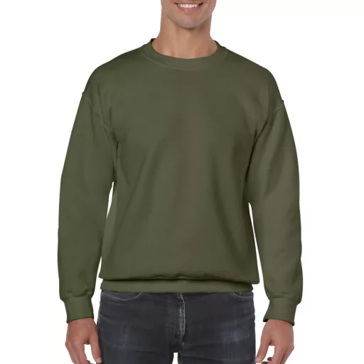 Kereknyakú körkötött pulóver, Gildan GI18000, Military Green-3XL