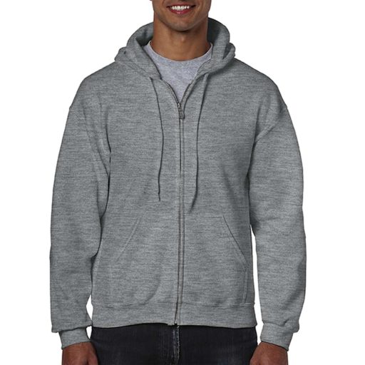 Cipzáras kenguru zsebes kapucnis pulóver, Gildan GI18600, Graphite Heather-M