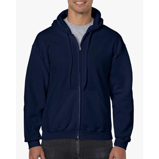 Cipzáras kenguru zsebes kapucnis pulóver, Gildan GI18600, Navy-S