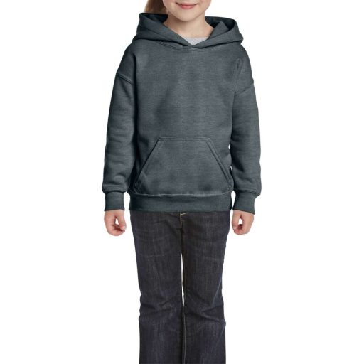 Kapucnis gyerekpulóver kenguruzsebbel, Gildan GIB18500, Dark Heather-XS