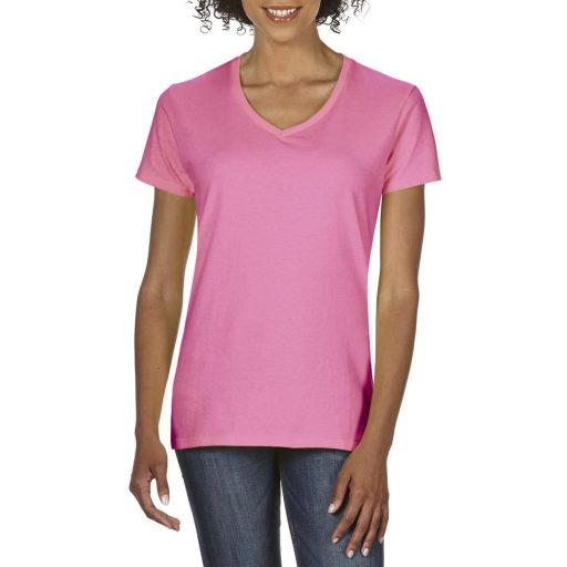 Rövid ujjú V-nyakú női póló, Gildan GIL4100V, Azalea-S