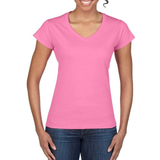 Softstyle V-nyakú testhez álló rövid ujjú női póló, Gildan GIL64V00,