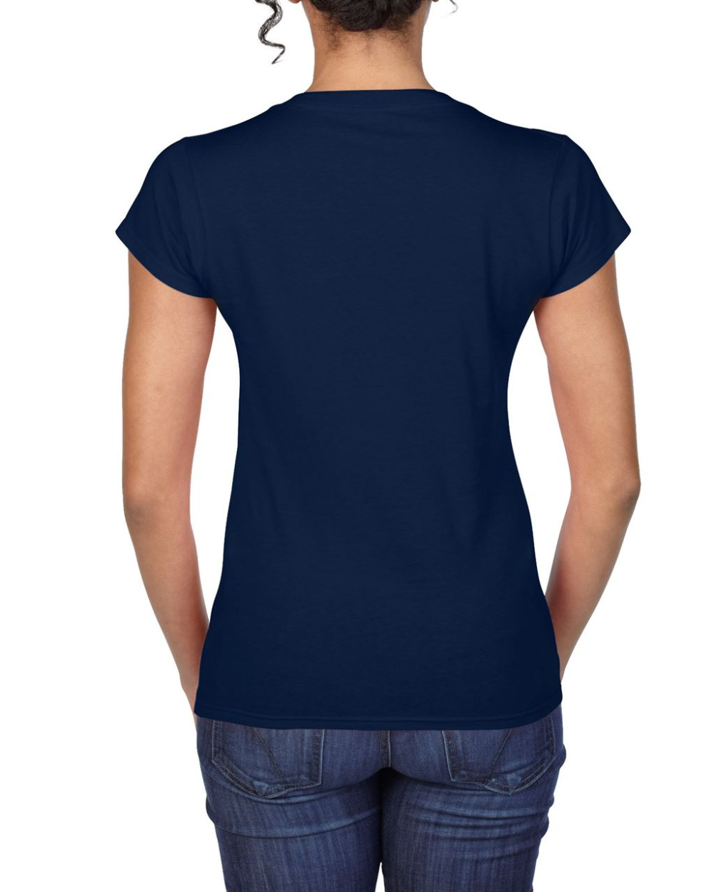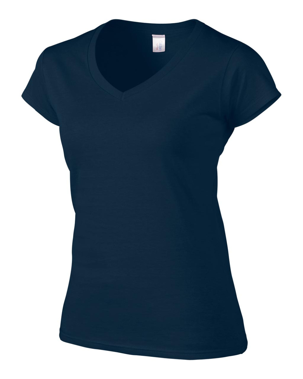 Softstyle V-nyakú testhez álló rövid ujjú női póló, Gildan GIL64V00, Navy-L