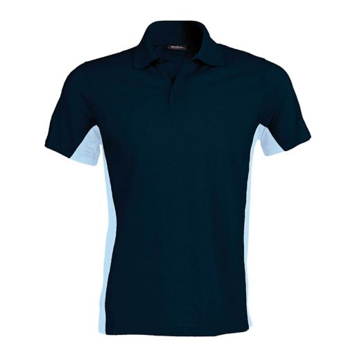 Férfi kétszínű rövid ujjú galléros piké póló, Kariban KA232, Navy/Sky Blue-S