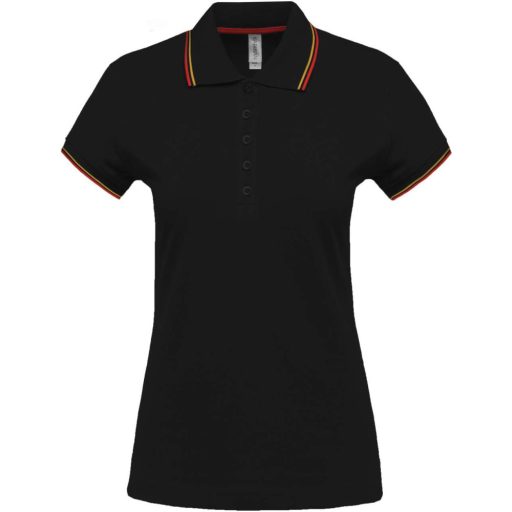 Női kontrasztcsíkos rövid ujjú galléros piké póló, Kariban KA251, Black/Red/Yellow-XL