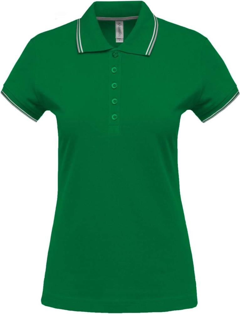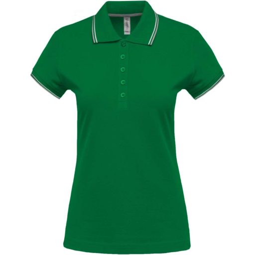 Női kontrasztcsíkos rövid ujjú galléros piké póló, Kariban KA251, Kelly Green/Light Grey/White-XL