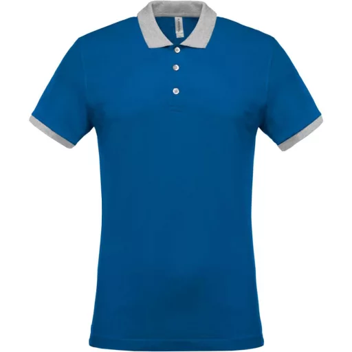 Férfi galléros piké póló, kontrasztos passzékkal, Kariban KA258, Light Royal Blue/Oxford Grey-S