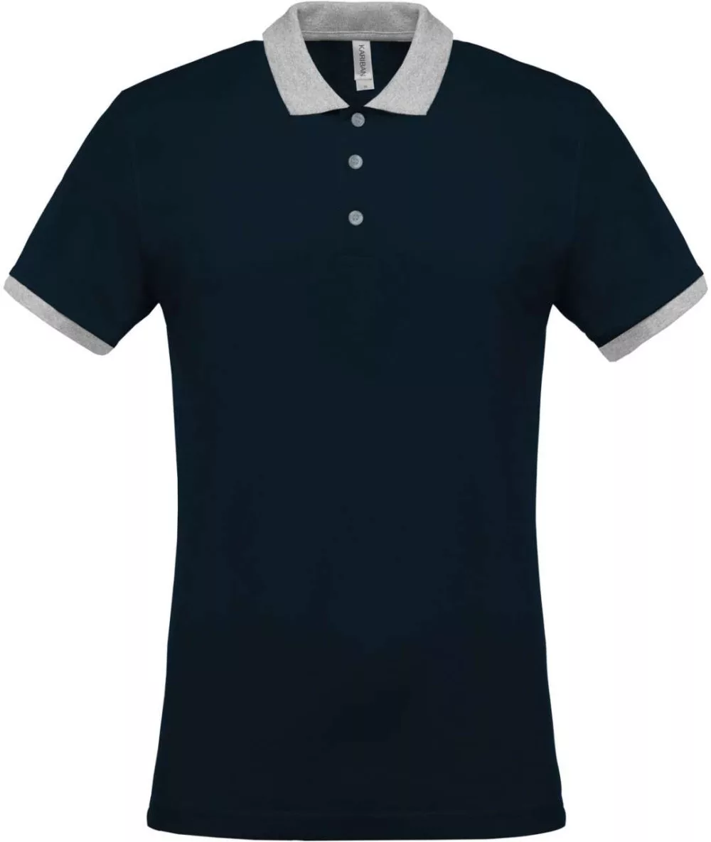 Férfi galléros piké póló, kontrasztos passzékkal, Kariban KA258, Navy/Oxford Grey-2XL