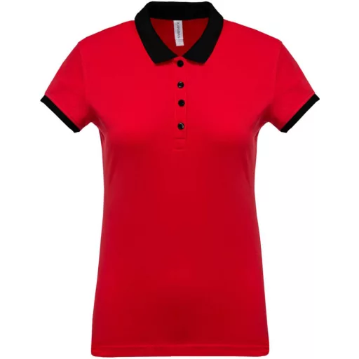 Női galléros piké póló, kontrasztos passzékkal, Kariban KA259, Red/Black-XS