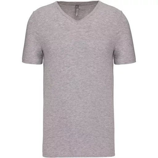 Férfi rövid ujjú V-nyakú sztreccs póló, Kariban KA3014, Light Grey Heather-S
