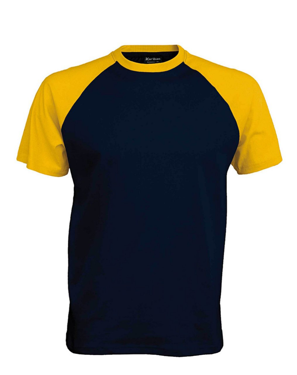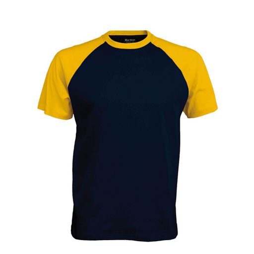 Férfi raglán ujjú kétszínű baseball póló, Kariban KA330, Navy/Yellow-3XL