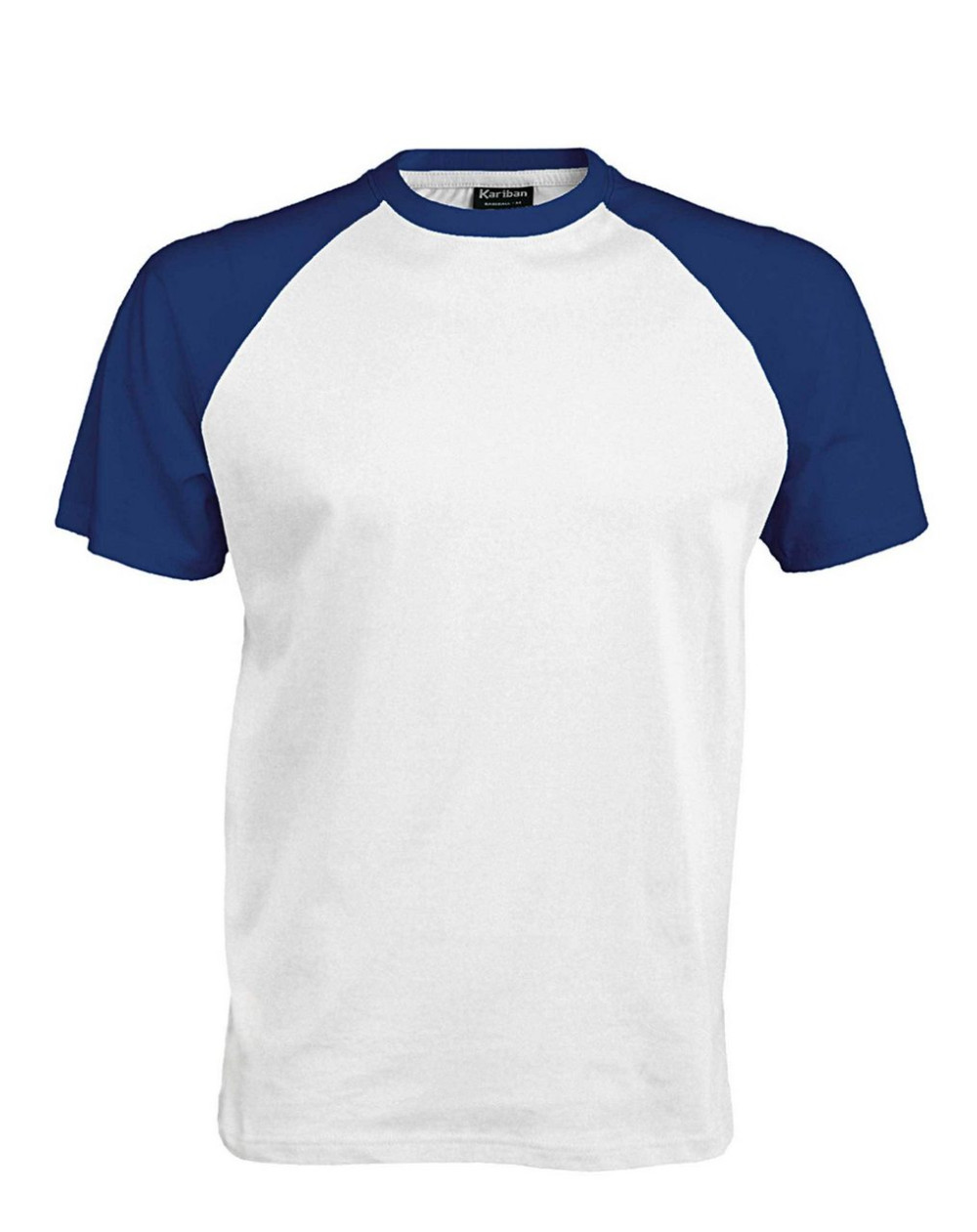 Férfi raglán ujjú kétszínű baseball póló, Kariban KA330, White/Royal Blue-2XL