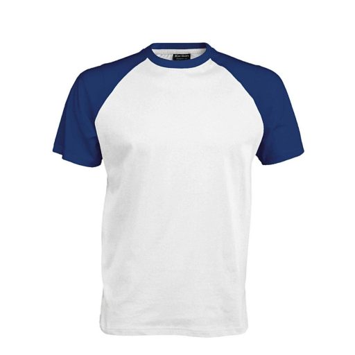 Férfi raglán ujjú kétszínű baseball póló, Kariban KA330, White/Royal Blue-L