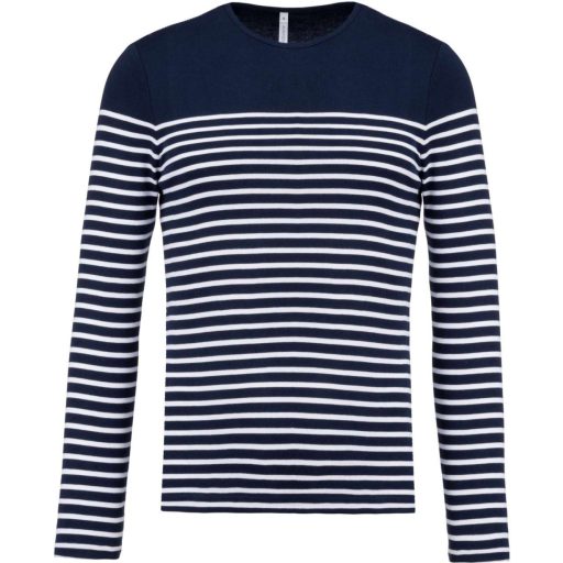 Férfi kereknyakú csíkos hosszú ujjú póló, Kariban KA366, Striped Navy/White-S