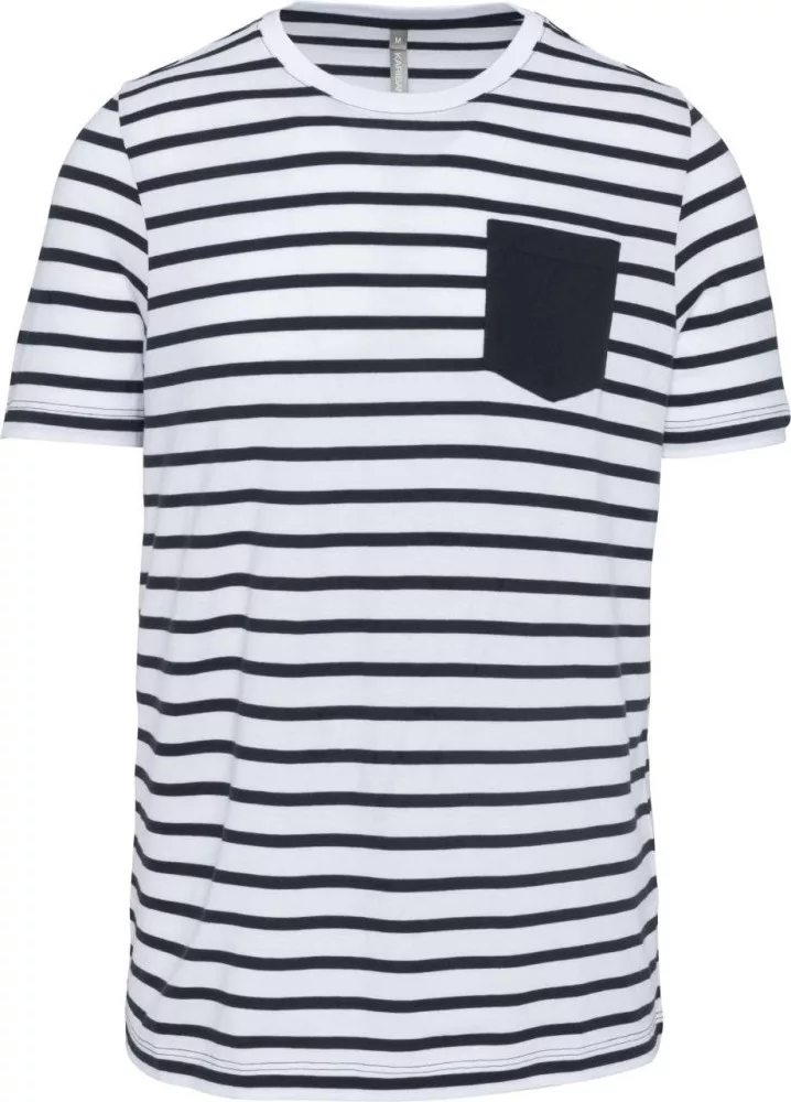 Férfi tengerész csíkos rövid ujjú póló mellzsebbel, Kariban KA378, Striped White/Navy-M