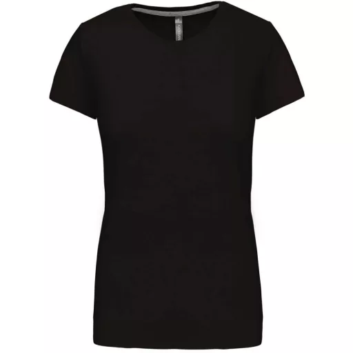Női rövid ujjú környakas pamut póló, Kariban KA380, Black-L