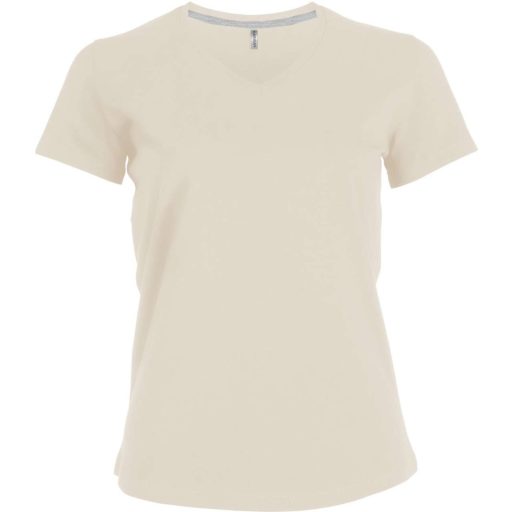 Női V-nyakú rövid ujjú pamut póló, Kariban KA381, Light Sand-2XL