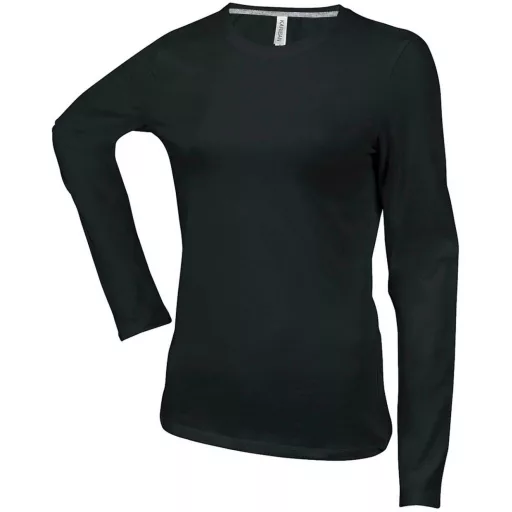Női hosszú ujjú kereknyakú pamut póló, Kariban KA383, Black-L