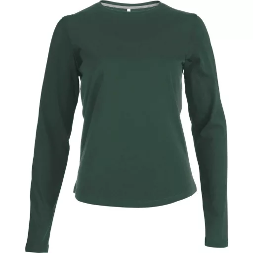Női hosszú ujjú kereknyakú pamut póló, Kariban KA383, Forest Green-M