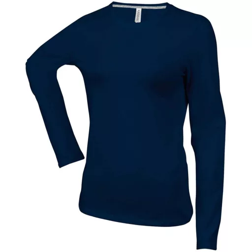 Női hosszú ujjú kereknyakú pamut póló, Kariban KA383, Navy-L