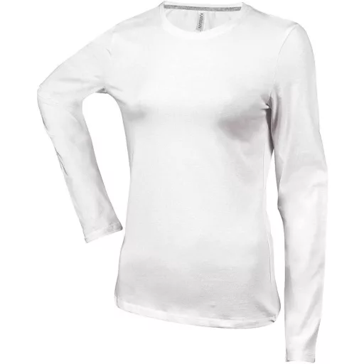 Női hosszú ujjú kereknyakú pamut póló, Kariban KA383, White-S