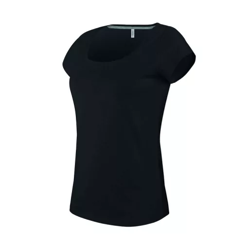Női rövid ujjú, csónak nyakú pamut póló, Kariban KA384, Black-3XL