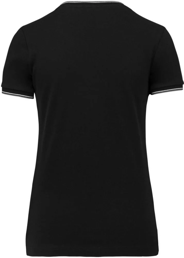 Kariban KA394 Női V-nyakú piké póló, csíkos szélekkel,