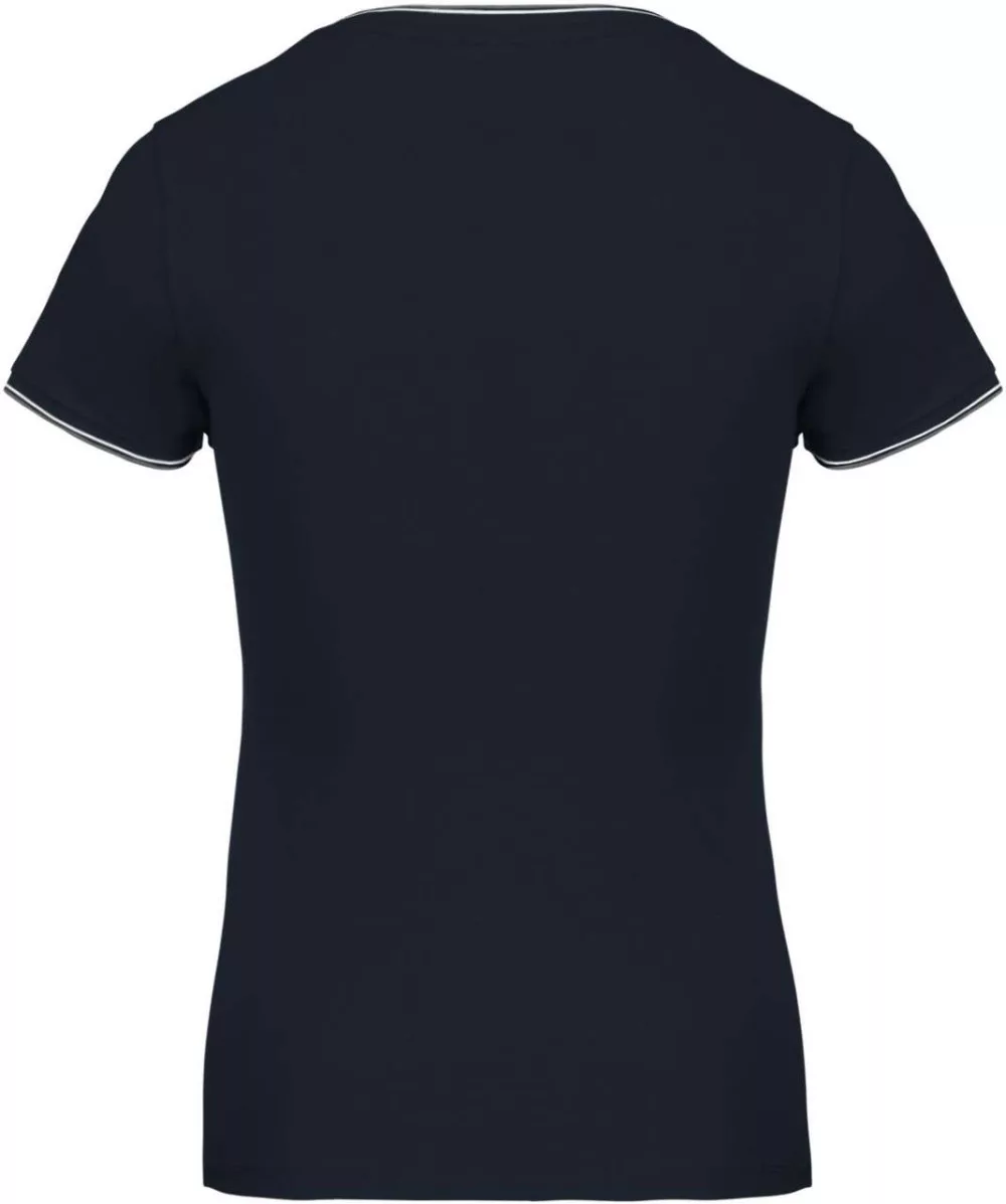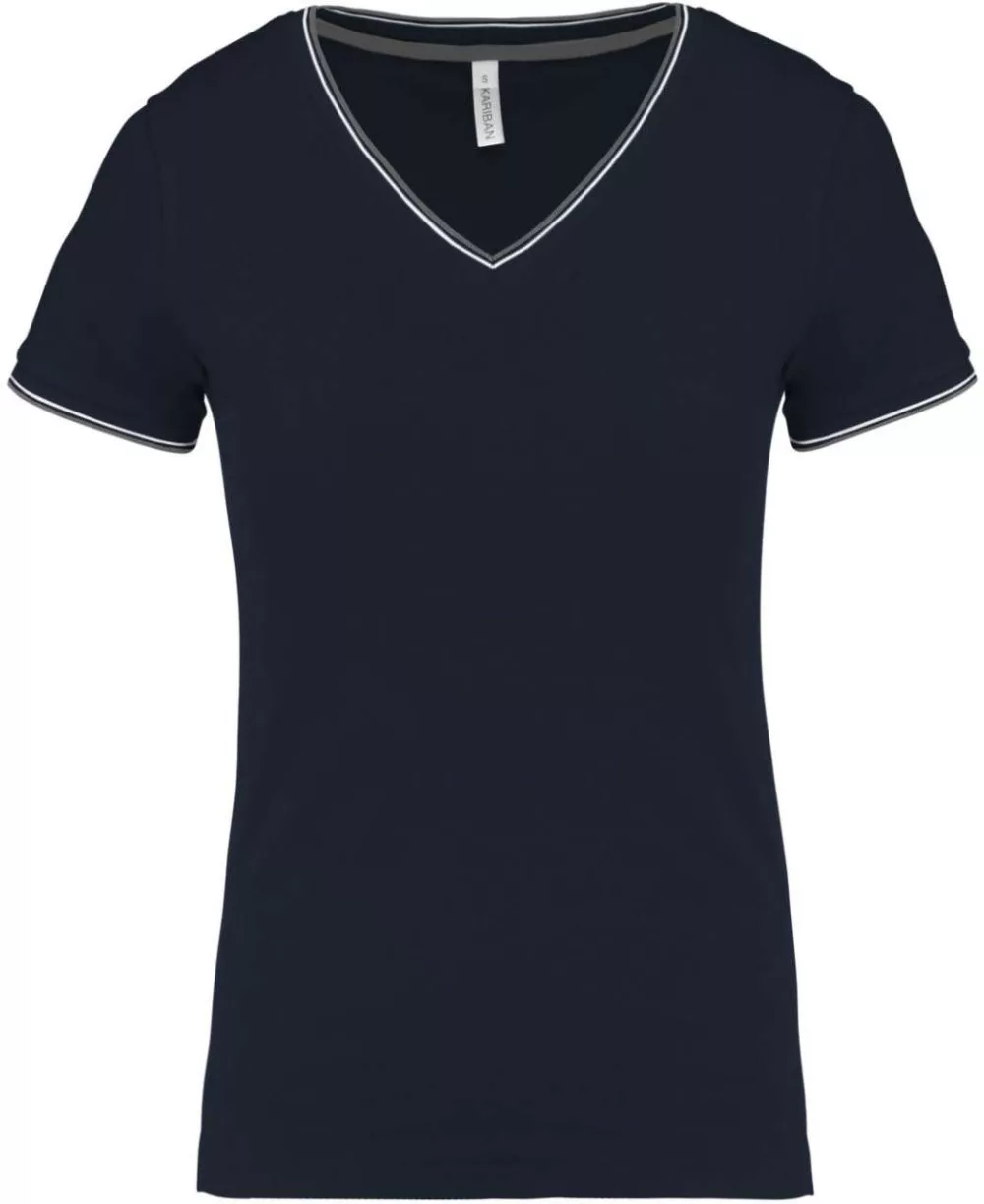 Kariban KA394 Női V-nyakú piké póló, csíkos szélekkel,