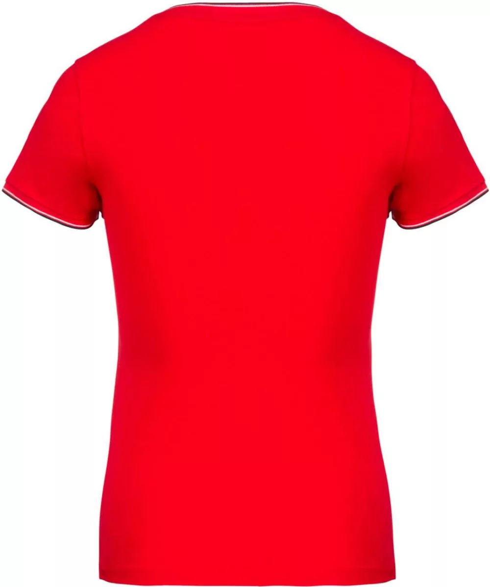 Női V-nyakú piké póló, csíkos szélekkel, Kariban KA394, Red/Navy/White-2XL