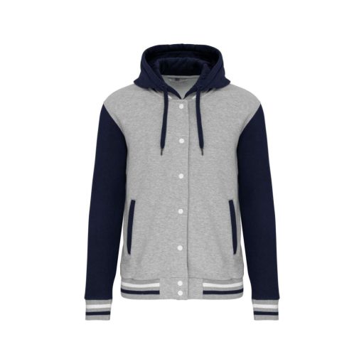 Uniszex  kapucnis patentos vastag pulóver, Kariban KA4003, Oxford Grey/Navy/White-S