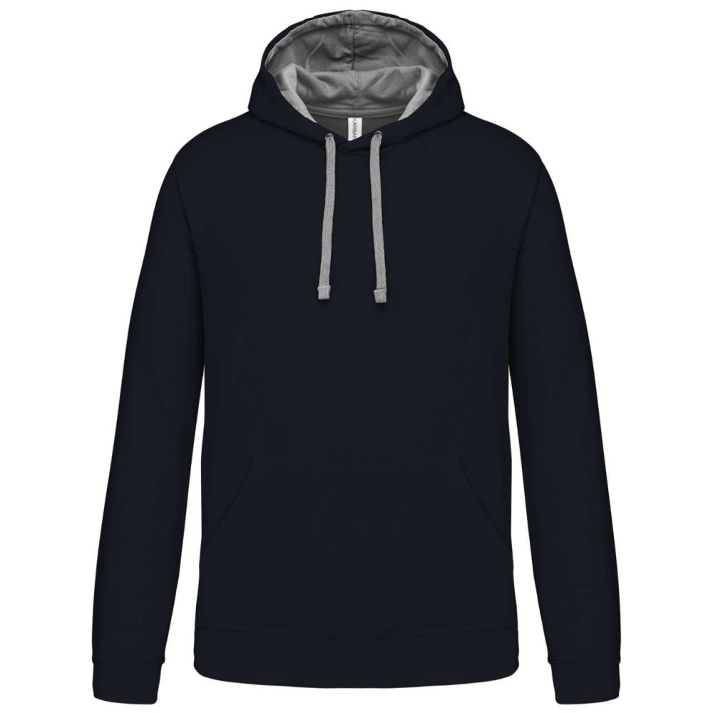 Férfi pulóver kontrasztos bélésű kapucnival, Kariban KA446, Navy/Fine Grey-4XL