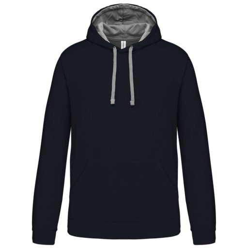 Férfi pulóver kontrasztos bélésű kapucnival, Kariban KA446, Navy/Fine Grey-M