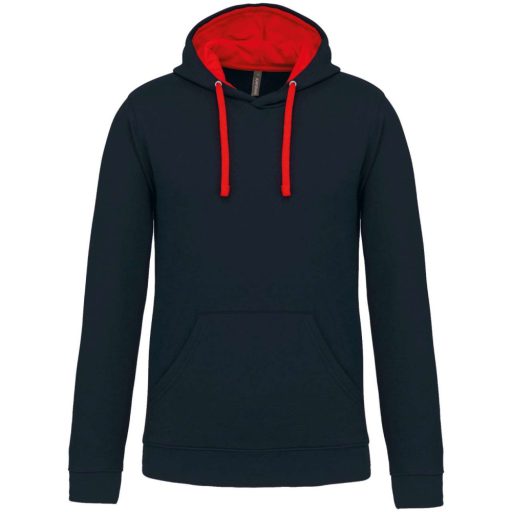 Férfi pulóver kontrasztos bélésű kapucnival, Kariban KA446, Navy/Red-2XL